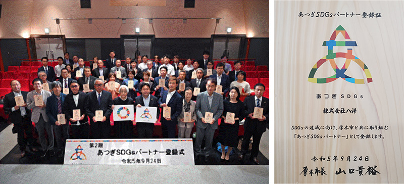 八洋はこのほど、厚木市(神奈川県)の「あつぎSDGsパートナー」として登録されました。