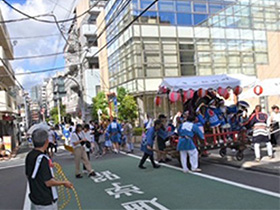 新宿区東五軒町で毎年秋に開催される町内会例祭や、節分に行われる町内会餅つき大会などで積極的に本社敷地を開放。地域振興とコミュニティの活性化に協力しています。
