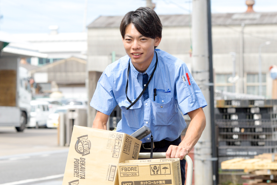 入社する前、ルートセールスは孤独な仕事だと思っていました。でも実際は営業所長を筆頭に、全てのメンバーが一つの目標に向かって一丸となって突き進んでおり、その活気とチームワークの良さは、学生時代に野球をやっていた私にはとても心地良く感じられます。先輩方も皆やさしくて、働きやすい職場環境だと個人的には思います。